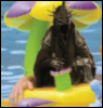Description: The Witch King from Lord of the Rings sitting in a childs pool float